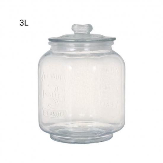 どっしりとした重量感のある丈夫なガラスジャー。容量は3Lで扱いやすいサイズ感。パッキン付きの蓋で密閉されるので、ペットのご飯を入れたりシリアルなどの食品を保存するのも安心です。