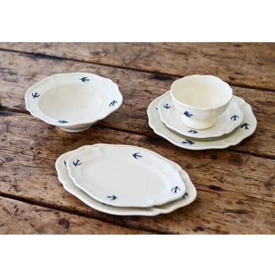 アーリーバードのモチーフともいえるツバメの絵は、細かな凹凸のレリーフに職人がひとつひとつ絵付けをしています。手仕事による色ムラや濃淡はお皿ごとの個体差があり、オリジナリティのある一枚が生まれています。ぜひ好みのツバメを見つけてお気に入りを選んでみてください。また、ツバメは縁起の良い鳥としてもよく知られていて、ラッキーチャームとして自分用に選ばれる方や贈り物としても喜ばれています。