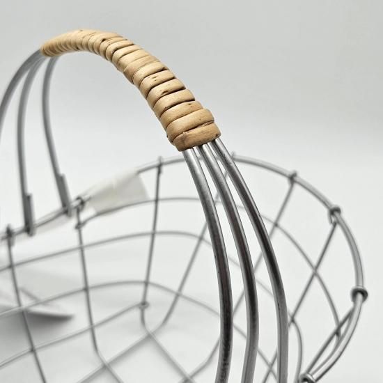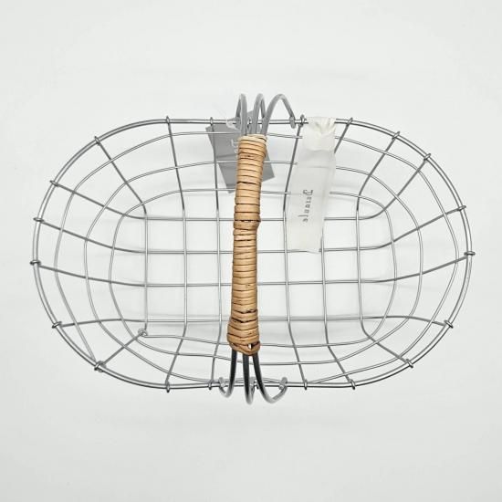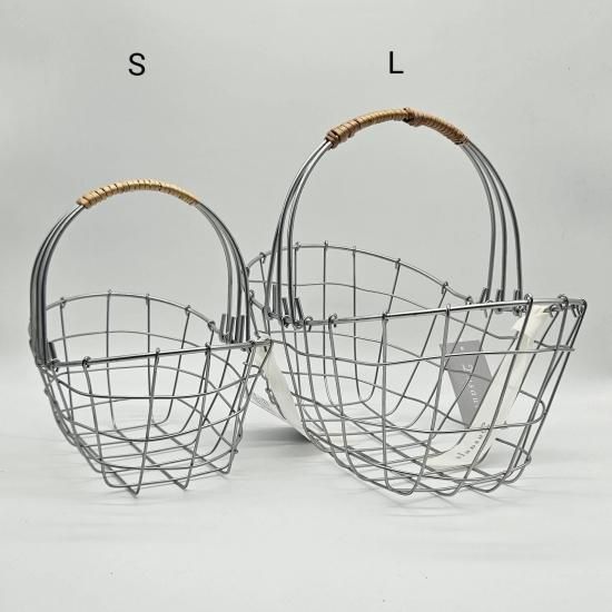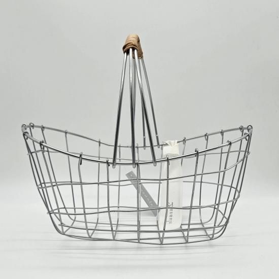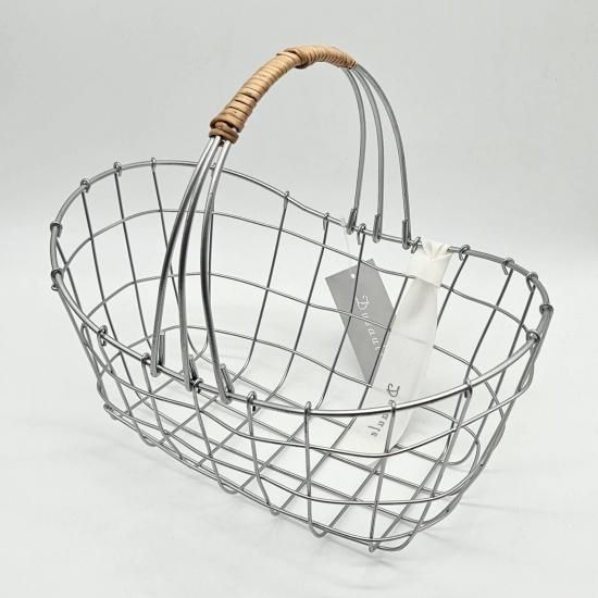 「Dusaule -デュソール-」シリーズは落ち着いたシルバー塗装で仕上げ、アクセントに柳を使ったワイヤーバスケットです。