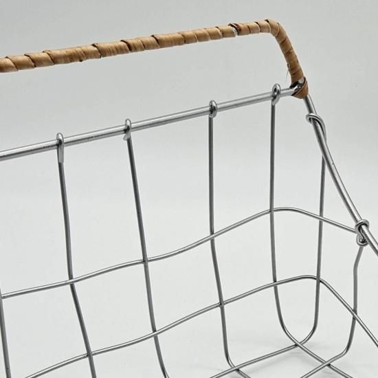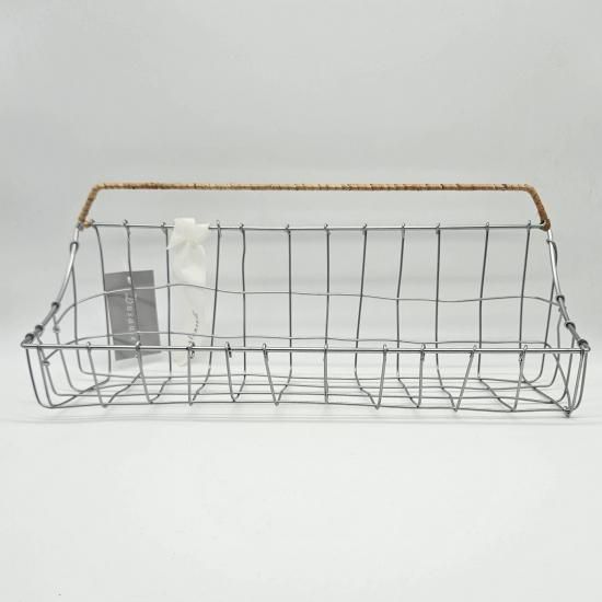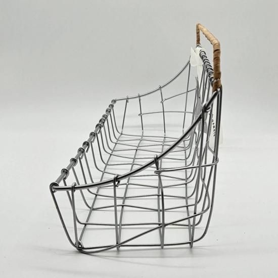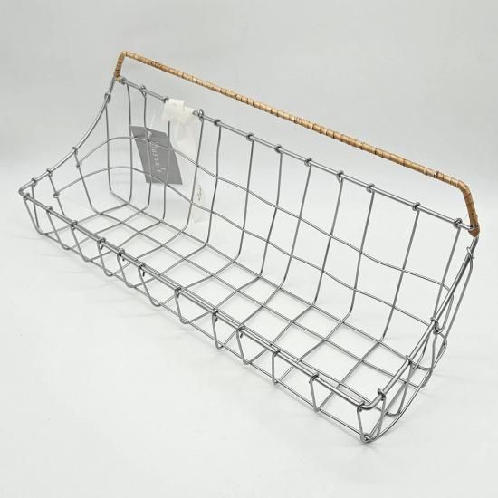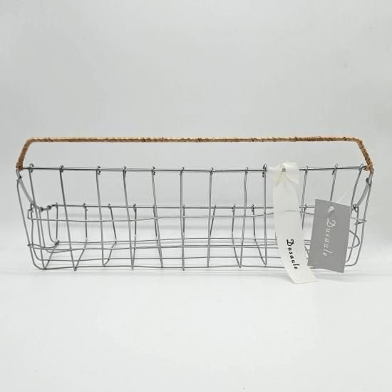 「Dusaule -デュソール-」シリーズは落ち着いたシルバー塗装で仕上げ、アクセントに柳を使ったワイヤーバスケットです。