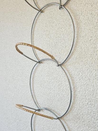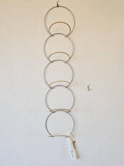 帽子や鞄、ベルトなどの服飾小物をまとめて収納できる連結ハンガー。ドア用のS字フックが付属しており、寝室のドアやクローゼットの扉などに 引っ掛けるだけで設置が可能。一人暮らしなどの収納が少ないお部屋に便利なアイテムです。扉がない場所でも、市販のフックを使用する事で、壁掛け収納としてもお使いいただけます。リングは引っ掛けるだけで連結ができるので、収納場所によって数を減らしたり、分けたりなど、シーンによって様々な使い方が可能です。その他のDusaule(デュソール)シリーズで収納を揃えても統一感が出るのですおすすめ。