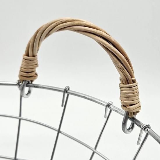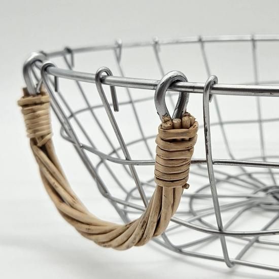 「Dusaule -デュソール-」シリーズは落ち着いたシルバー塗装で仕上げ、アクセントに柳を使ったワイヤーバスケットです。