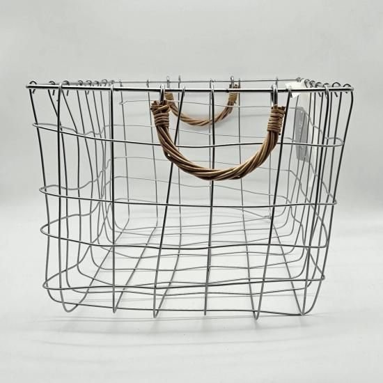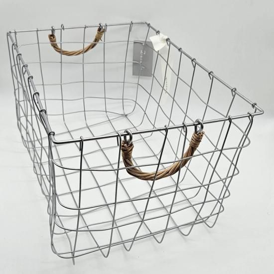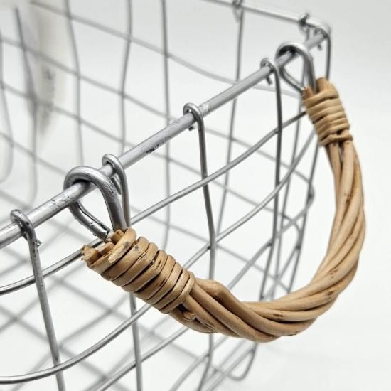 「Dusaule -デュソール-」シリーズは落ち着いたシルバー塗装で仕上げ、アクセントに柳を使ったワイヤーバスケットです。