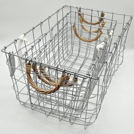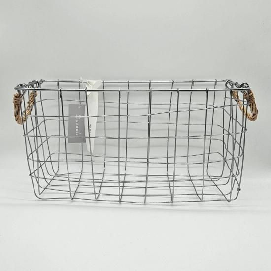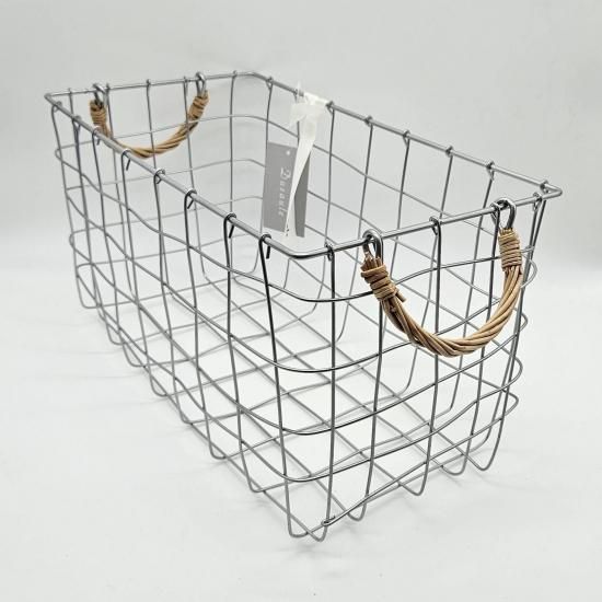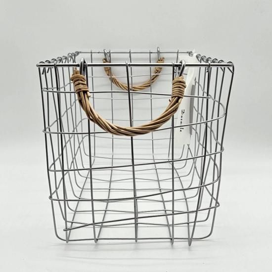 「Dusaule -デュソール-」シリーズは落ち着いたシルバー塗装で仕上げ、アクセントに柳を使ったワイヤーバスケットです。