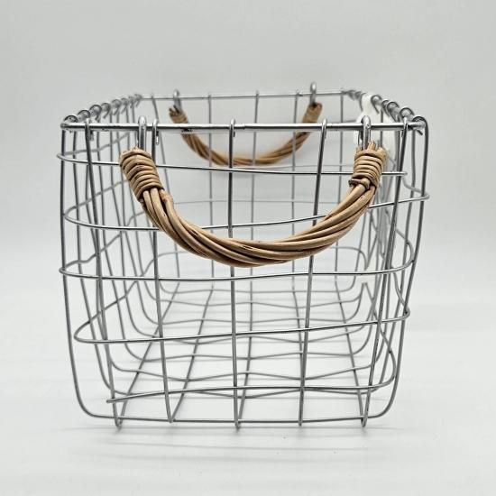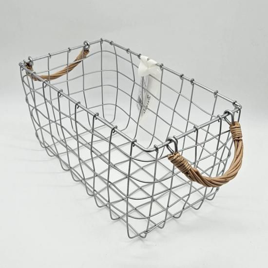 「Dusaule -デュソール-」シリーズは落ち着いたシルバー塗装で仕上げ、アクセントに柳を使ったワイヤーバスケットです。