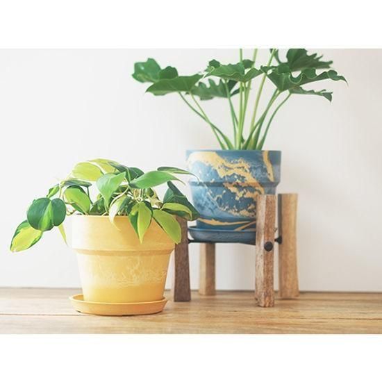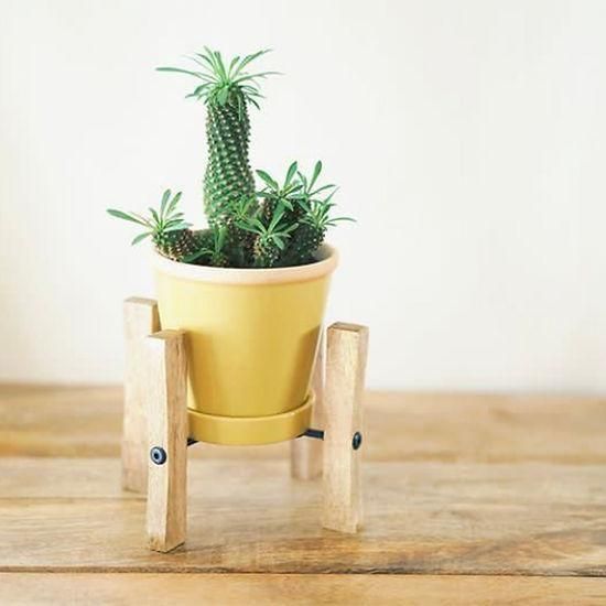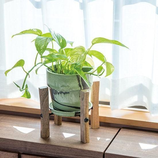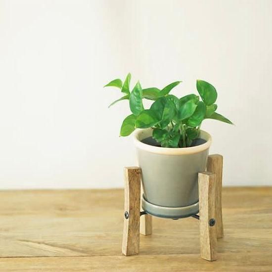 スクエアバーのアイアンを使用したスタイリッシュなデザインが魅力的なスタンド。そのまま置いていた鉢もちょっとした装飾でまた違った雰囲気に演出します。使いやすい卓上サイズ。