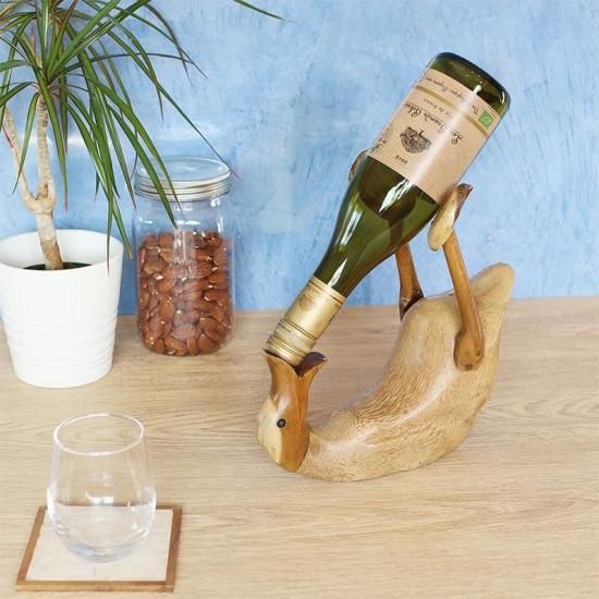 お酒をぐびぐび飲みほしてしまいそうな可愛いアヒルのボトルホルダー。その愛くるしい姿は癒されること間違いなし!ボトルが置けるユニークなアイテムです。