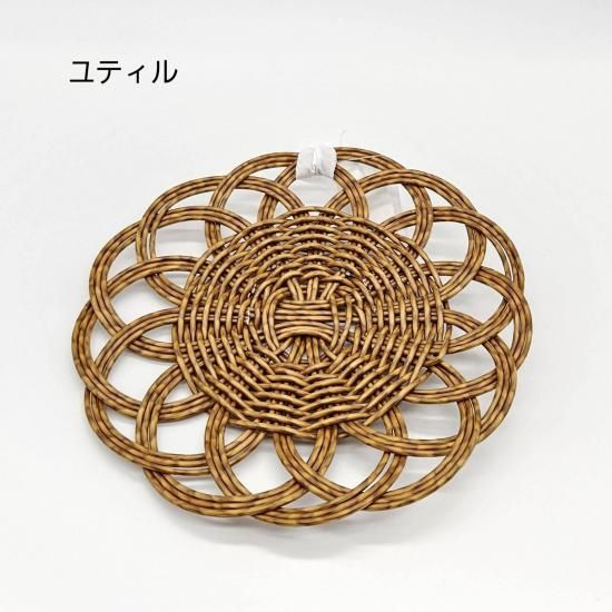 手編みで仕上げたラタン風のポットマット。お茶の時間にぴったりのポットマットは、熱いお湯の入ったポットやお鍋からテーブルをやさしく守ってくれます。丸く花のように編まれたマットは置くだけでテーブルを華やかに。ユティルシリーズのバスケットと合わせて使うと統一感が出ておすすめです。気軽に使えて天然素材のような編み模様の美しさも楽しめるアイテムです。