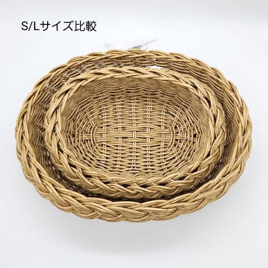 果物もたっぷり入るオーバル型のバスケットです。果物以外に 野菜かごやパン、お椀などを入れる食器かごにもお使いいただけます。コンパクトであまり底が深くない分、必要なものをサッと取り出しやすいので、毎朝使う化粧品やハンドクリームなどケア用品の収納にもおすすめのサイズ感です。縁取りを加えることで素朴なかわいらしい印象に。見える場所に置いていても絵になるデザイン。サイズ違いで揃えてもかわいいです。