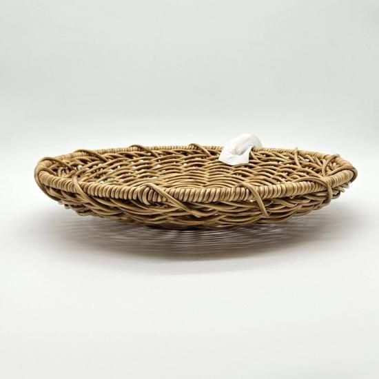 水切りや盛り付けに使える丸形のバスケット。野菜や食器の水切り・盛り付けにもお使いいただけます。食卓にも丁度いい直径約24cmのSサイズは、おそばやうどんの盛り付けにぴったり。樹脂素材でできているので、天然素材のようなささくれも発生しません。使用後は竹かごと同じく通気性の良い場所での乾燥をお願いしていますが、水分による劣化の心配がない分お手入れも簡単です。