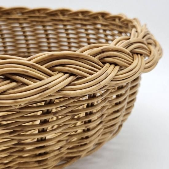 天然素材で編まれたような自然な温かみのあるバスケット。果物かごはもちろん、パンの盛り付けにもおすすめです。ニンジンも寝かせた状態でしっかり入るサイズ感。汚れたら水洗いができるので、 泥や土がついていることが多いジャガイモや玉ねぎの保存にぴったりです。縁取りを加えることで素朴なかわいらしい印象に。サイズ違いで揃えてもかわいいです。