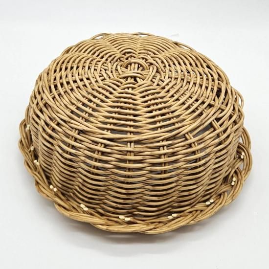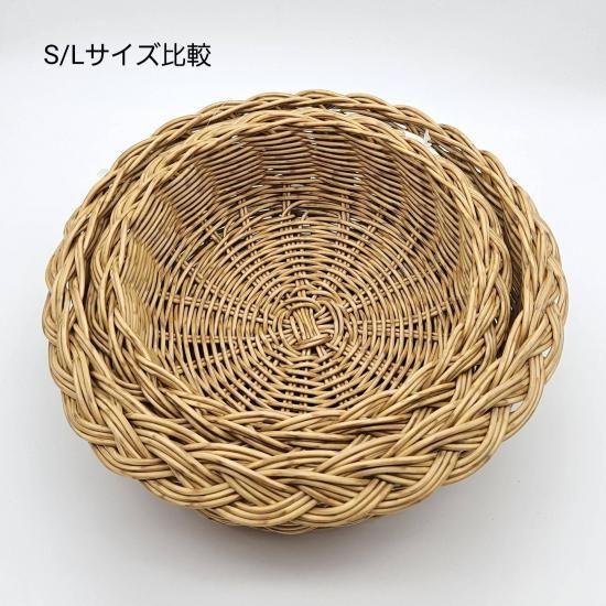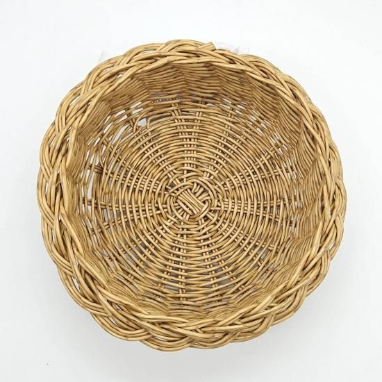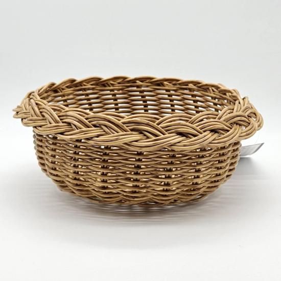 天然素材で編まれたような自然な温かみのあるバスケット。バスケットの内側は約17cmほど。ちょっとした果物かごとしてテーブルの上にも置きやすいサイズ感です。キッチンはもちろん小物収納にも。洗える素材なのでコスメや水回りの収納にもぴったりです。縁取りを加えることで素朴なかわいらしい印象に。サイズ違いで揃えてもかわいいです。