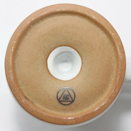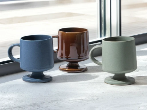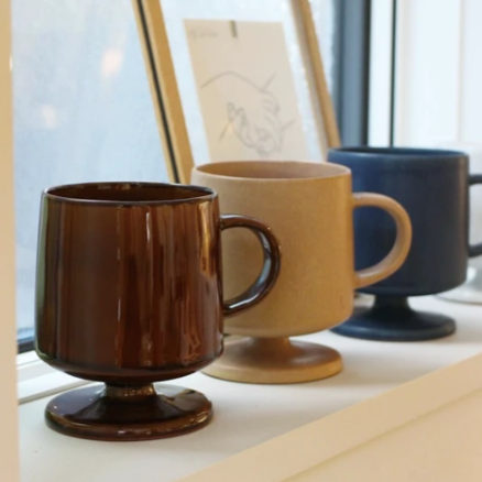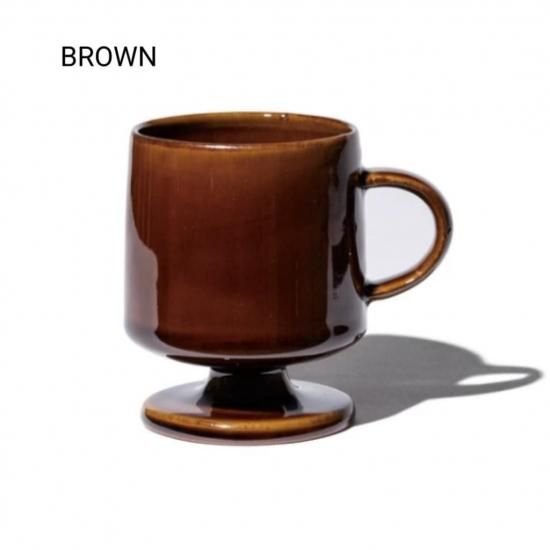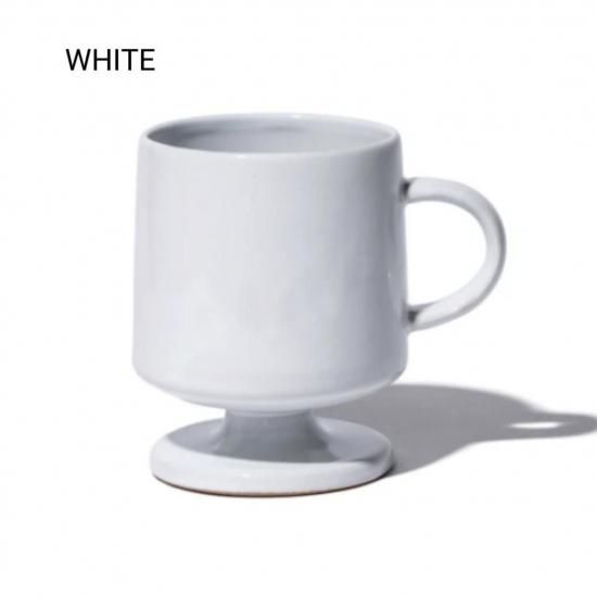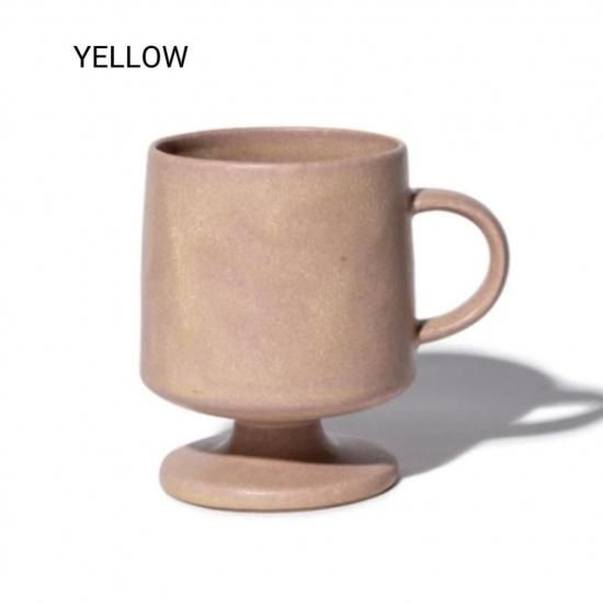 ヴィンテージ感のある高台付きのマグカップ。シンプルながら洗練されたオブジェのような形なのでインテリアの一部としても活躍してくれます。あえてちょっと傾いたデザインになっているのが特徴です。お祝い事のプレゼントにもおススメ。