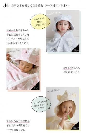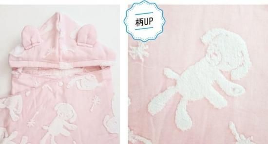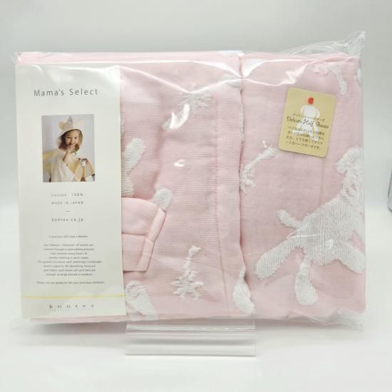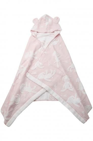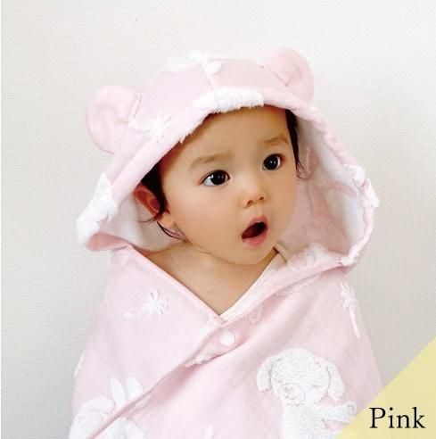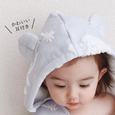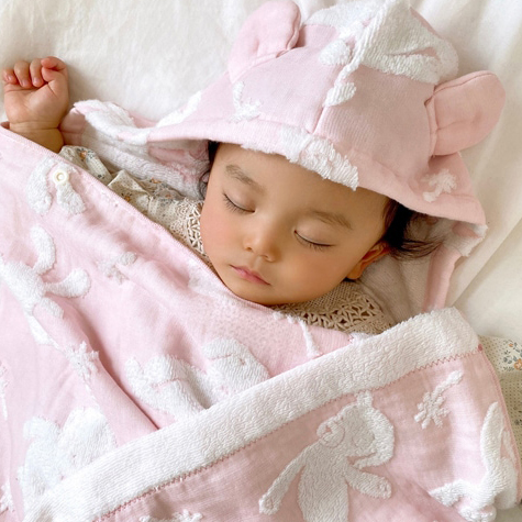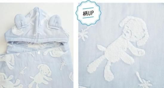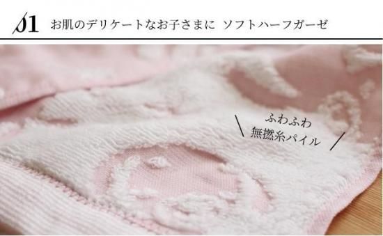 ふんわりしたパイルと柔らかなガーゼが織りなす、とてもデリケートなハーフガーゼです。パイル面には無撚糸を使用・ガーゼ面には繊細な糸を使用し、やわらかさと軽さにこだわりました。お肌のデリケートなお子様にも安心してお使いいただけます。薄手で乾きが速く、かさばらず軽いので毎日づかいにぴったりです。お洗濯後の、ふわふわ感はとても肌触りがよく、お子さまの肌を優しく包み込んでくれます。また、綿100%なので衛生面においても安心してお使いいただけます。吸水性と保湿性があるので、忙しいお風呂あがりに、さっとかぶせてお使いいただけます。その他、バスタオルとしてはもちろん、おくるみやプールサイドやビーチなど幅広い用途で大活躍してくれます。実用性とかわいさを兼ね備えた、出産祝いの贈り物に人気のアイテムです。