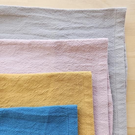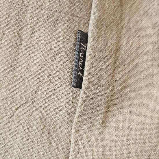 インドの工場で開発したオリジナル生地「ウォッシュドコットン」。綿素材に適度な洗い加工を施し、程よいシワ感を出すことで、ソフトで柔らかなテクスチャーになっています。手触り、着用感の良さが人気のアトリエヌイの定番生地です。