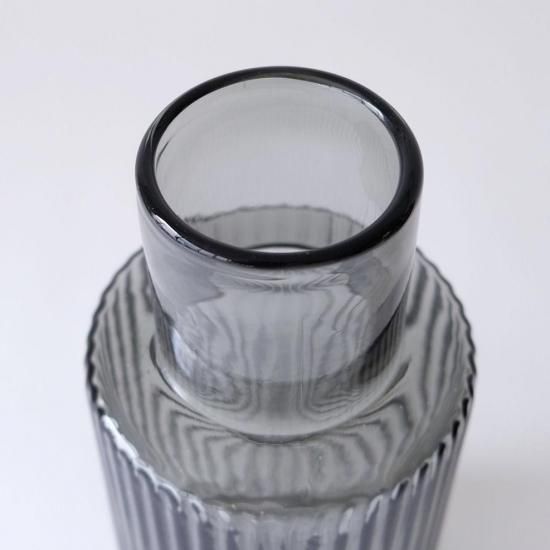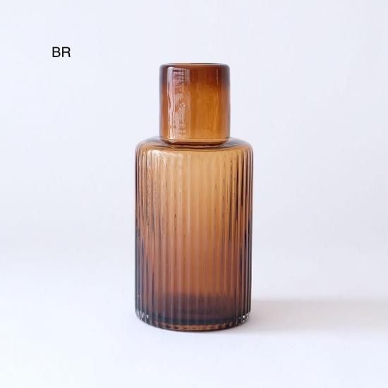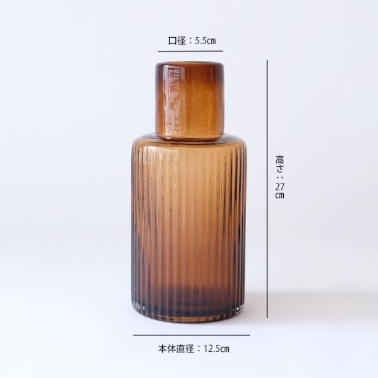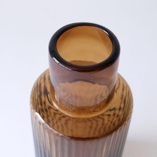 濃い色目で落ち着いた、存在感のあるフラワーベースです。しっかりしたガラスなので安定感があり、大きめの花や枝ものにもおすすめです。一つ一つ手作業のため、サイズやガラスの厚み、色に多少の個体差があります。