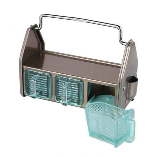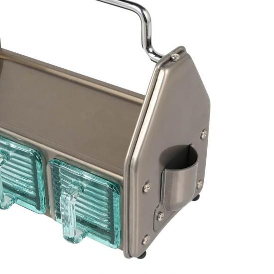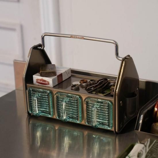 ダイニングテーブルやデスクなどに置いている調味料や小物をまとめておけるオーガナイザー。 3つのガラス容器には、キッチン用品からペンやハサミなど様々な小物を収納できます。デザイン性もありインパクトのある商品です。