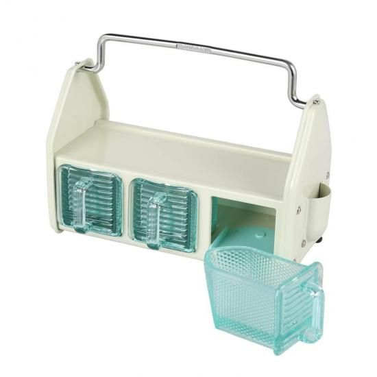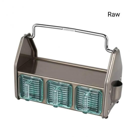 ガラス容器は一般的な食器と同様に洗浄いただけます。ご使用前に必ず洗浄してください。ガラス容器は食品を入れることができますが、密閉性がない容器のため個包装されたものを推奨します。また、液体の収納はできません。塩類の強い食品は本体の腐食を誘発する可能性がありますのでお控えください。製品のサイズ・形状、また容器の開閉には個体差があります。小さなお子様が取り扱う際には十分ご注意ください。高温多湿の環境下での使用、また濡れたまま放置しますとサビの原因となりますのでご注意ください。移動させる際は、必ずガラス容器が飛び出さないよう容器を抑えながら両手で移動してください。製造工程上、本体の表面塗装は僅かな擦れや小傷が見られる場合があります。本体の丸洗いはお控えください。本体が汚れた際は、柔らかい布に中性洗剤を含ませて拭き取ってください。タワシや溶剤等は使用しないでください。製品に破損が見られた際は、ただちにご使用をおやめください。本製品の隙間や穴に手や指を入れないでください。また、フチで手や指を滑らせないようご注意ください。