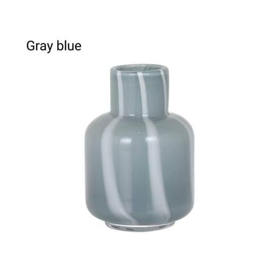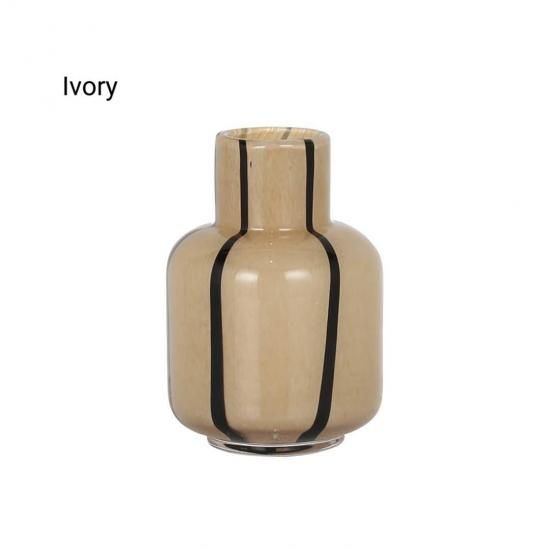 ソフトなカラーリングにライン模様が入ったフラワーベース。色柄はガラスに練り込まれており、飴玉のような艶めきが魅力的。小ぶりでちょっとしたスペースに置きやすく安定感があるため、花を活けずにそのまま置いても映える商品です。