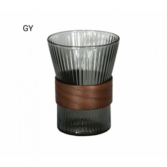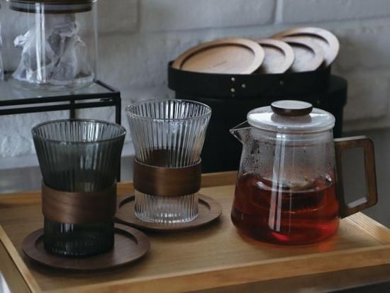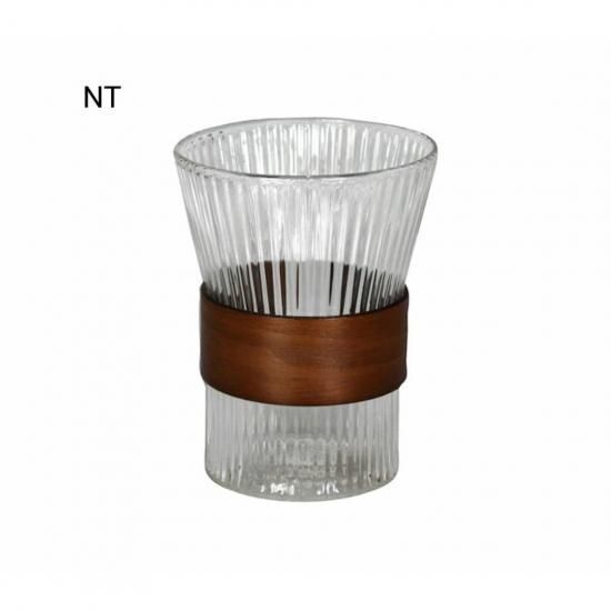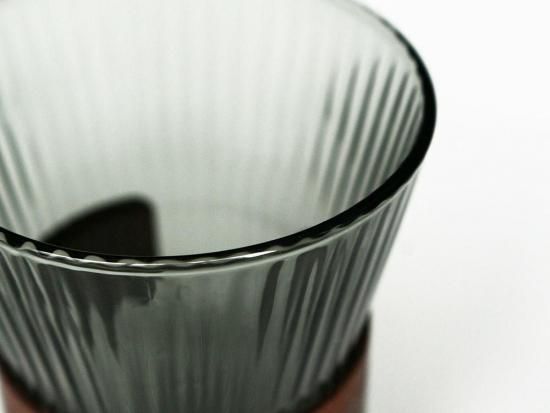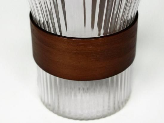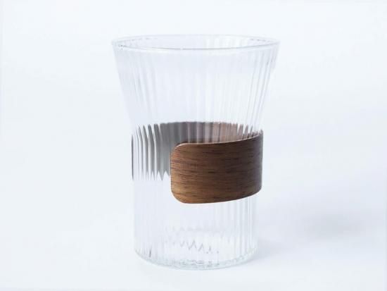 暖かみのある天然のウォルナット材をスリーブ部分に使用したデザインカップ。飲み口がワイドに広がっておりシンプルながらも存在感あるグラスです。美しいウォルナットの木目と細かくリブが施され、キラキラと光るガラスカップの調和をお楽しみ下さい。スリーブはウォルナットを使用しており、しっとり感や光沢が美しいです。木が乾燥して白っぽくなってきたら、紙やすりで軽く磨き、ご家庭にあるオリーブオイルなどの植物性オイルを塗ってご自宅でケアができます。大切にケアすることにより、より味わい深くなり長くお使いいただけます。