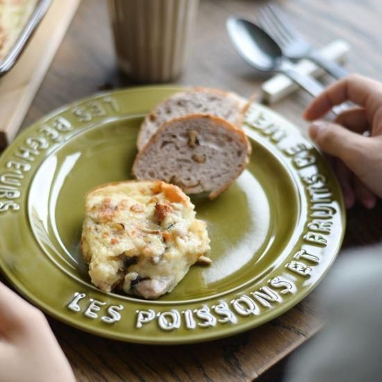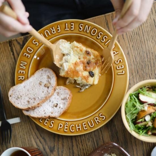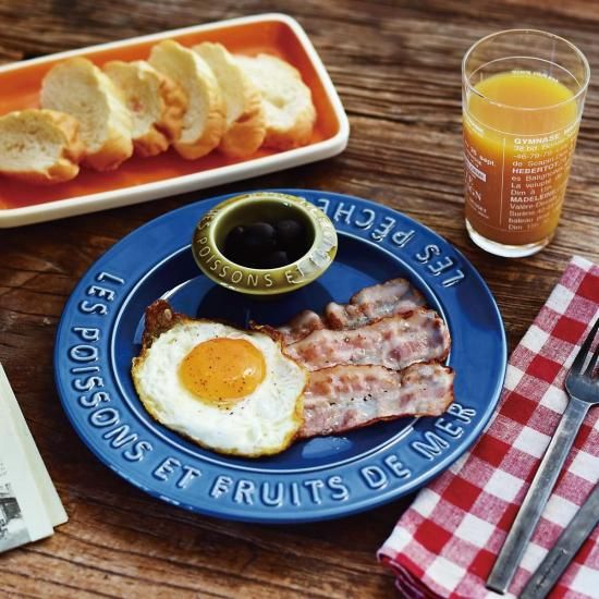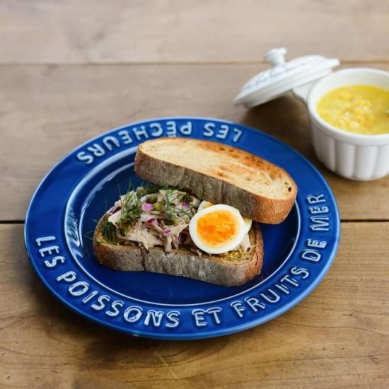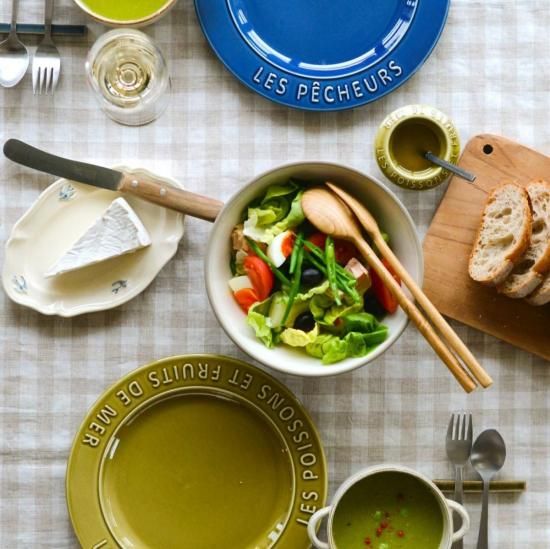 外国の漁師町にある老舗のレストランで使われている、という設定でイメージされた食器。まわりの凸文字がいいアクセントになり、シンプルなお料理も素敵なワンプレートに!裏には碇のロゴマークが描かれており、港にあるレストランが想像できます。凸文字と鮮やかな色が、テーブルの上で存在感を出してくれるアイテム。食卓をかっこよくきめたい時や、パッと明るくしたい時にぴったりです。