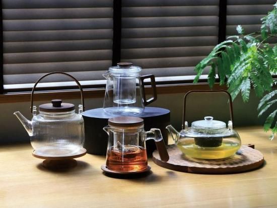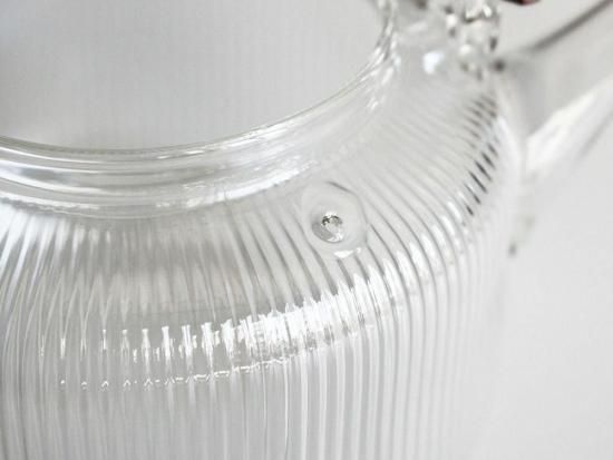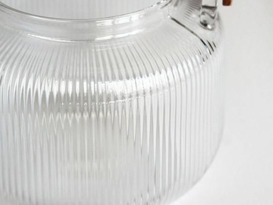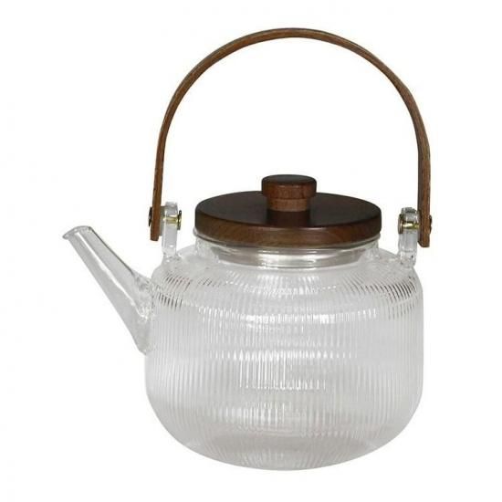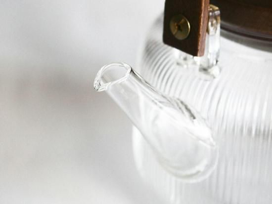 ガラスに刻まれた繊細なリブが光を反射し、ティータイムをより魅力的な時間にしてくれます。容量も900mlと多く、家族やお友達をお誘いしたお茶会などにぴったりです。ウォルナット部分はオイル仕上げをしているので、しっとり感や光沢が美しいです。木が乾燥して白っぽくなってきたら、紙やすりで軽く磨き、ご家庭にあるオリーブオイルなどの植物性オイルを塗ってご自宅でケアができます。大切にケアすることにより、より味わい深くなり長くお使いいただけます。