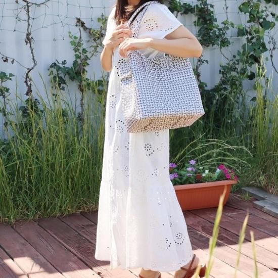 マチがあってスッキリとしたシルエット。深型バッグで見た目以上にたくさん入れられます。肩かけもできるので重たい荷物を入れた時でも楽ちん!ボタンを留めたら中身の飛び出しを防いでくれ、開けたままならA4サイズのノートも縦に入れることができます。ピクニックやアウトドアはもちろん日常使いでも◎