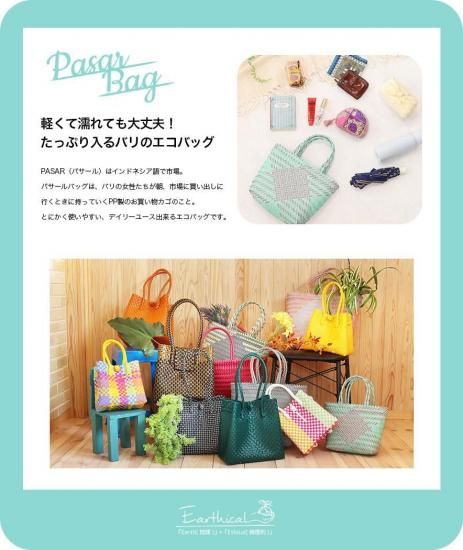 PASAR(パサール)とはインドネシア語で市場。パサールバッグは、バリの女性たちが朝、市場に買い出しに行くときに持っていくPP製のお買い物カゴのこと。色とりどりのバッグは軽くて濡れても平気、とにかく使いやすい!デイリーユース出来るバリのエコバッグです。