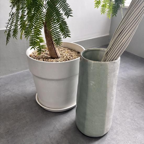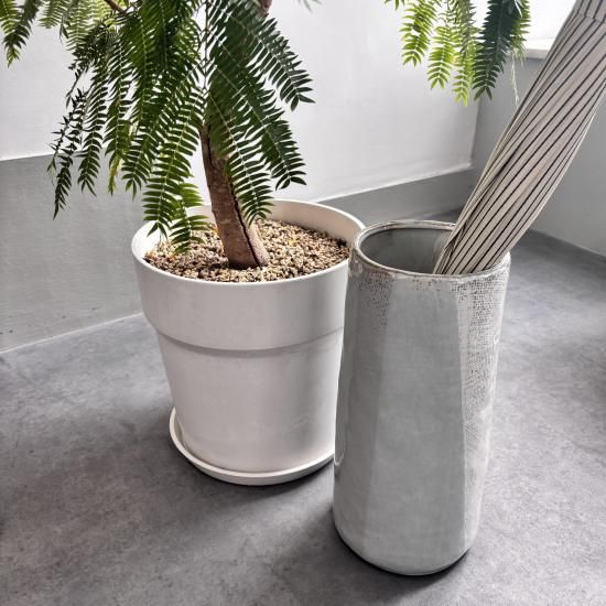シンプルなデザインとカラーの高級感のある、お洒落な陶器の傘立てです傘立てだけでなくドライフラワーなどを入れてもGoodです。使いやすいシンプルなデザインでどんな玄関でもなじみナチュラルなほっこりカラーの2色ご用意しました。コンパクトなサイズ感ですので狭い玄関にも置くことが出来ます。