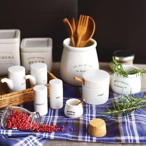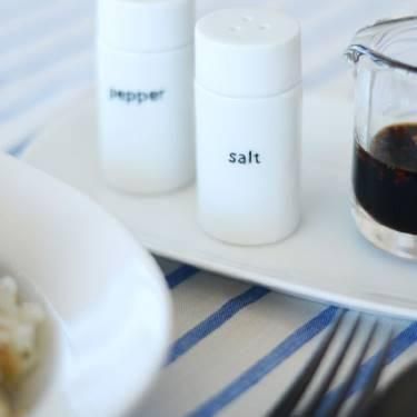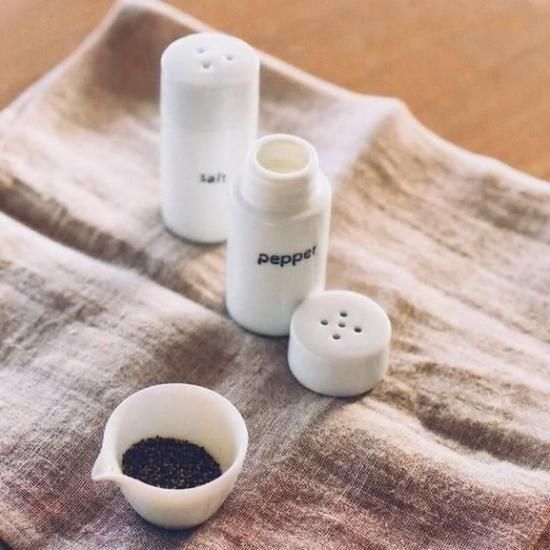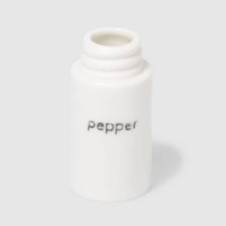 職人さんが1つ1つ手押ししたスタンプは、かすれ具合が違ったり、にじんでいたりと表情が微妙に違うのが特徴。カチッとした文字が入るより、このちょっとゆるいロゴだからこそ味わいが出ます。蓋の部分を捻って開け閉めできるようになっていて、ソルトが3ツ穴、ペッパーが5ツ穴です。シンプルで飽きの来ないデザインは、シリーズで揃えると食卓がぐっとお洒落になります。