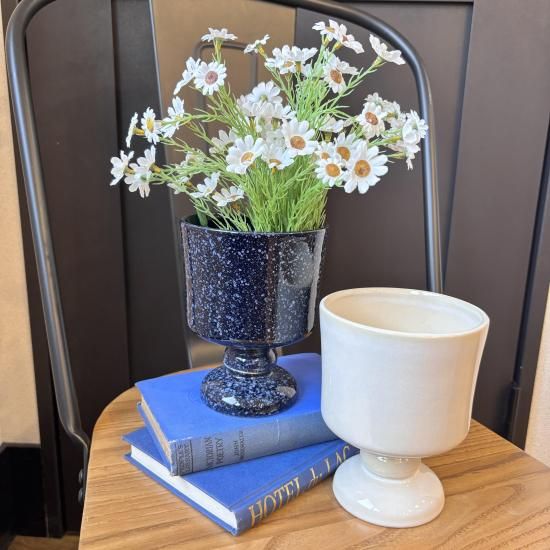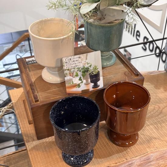 キャンドルスタンドをモチーフにした、くびれた足が特徴的なシンプルで上品な磁器製鉢カバーです。多肉植物やサボテン、小さな観葉植物をビニールポットのままポンと入れても可愛らしく飾ることができます。 玄関やリビング、さまざまなアイデアでインテリアのアクセントに◎おすすめです。カラーはアイボリー、グリーン、ネイビー、ブラウンの4色でどれも落ち着いた色合いです。